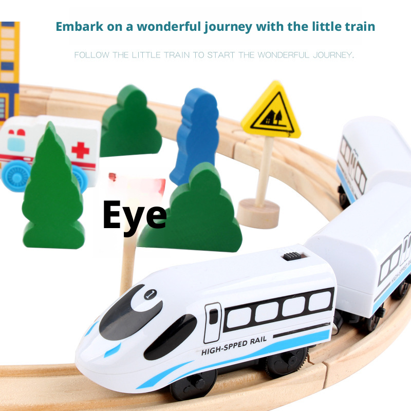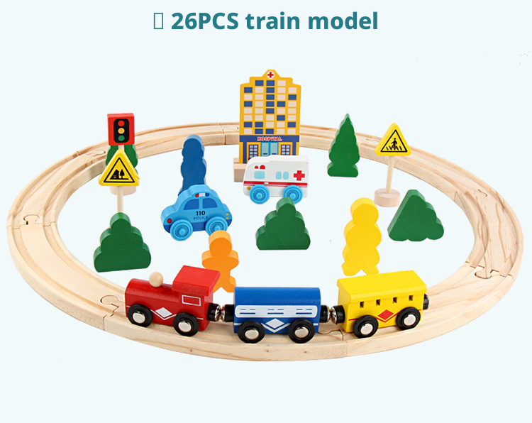 مجموعة قطار خشبي مغناطيسي مع قاطرة كهربائية – لعبة سكة حديد للأطفال