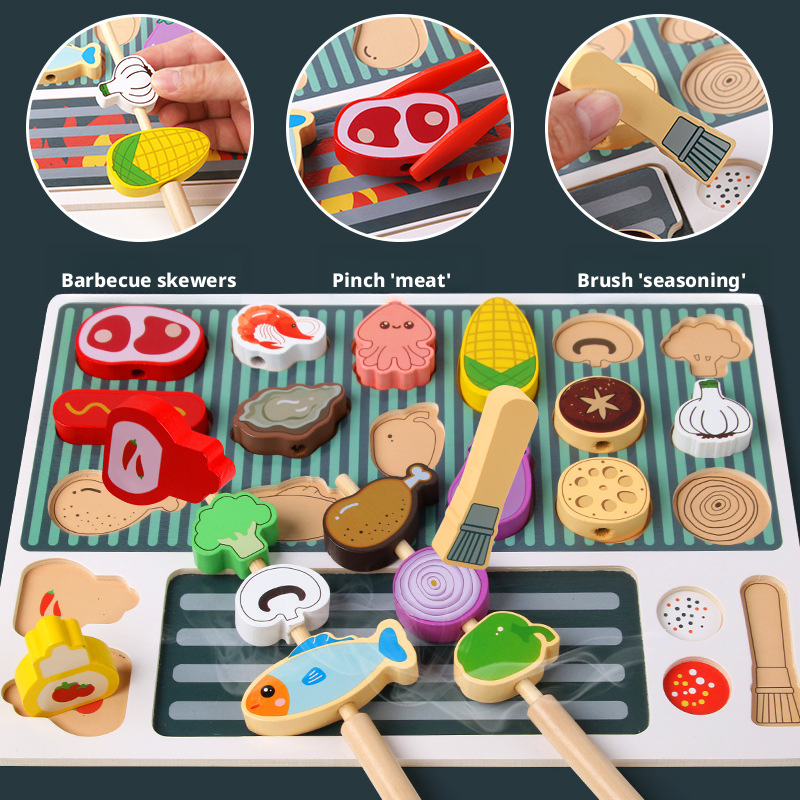 يستطيع الأطفال ممارسة التجميع العملي، والإمساك، واللعب التفاعلي، مما يُنمّي مهاراتهم الحركية الدقيقة، والتفكير المنطقي، والتنسيق، وقدرات التواصل. تُعزز هذه اللعبة التفاعل بين الوالدين والطفل، وتُنمّي اهتماماتهم من خلال أنشطة شواء تمثيلية واقعية.